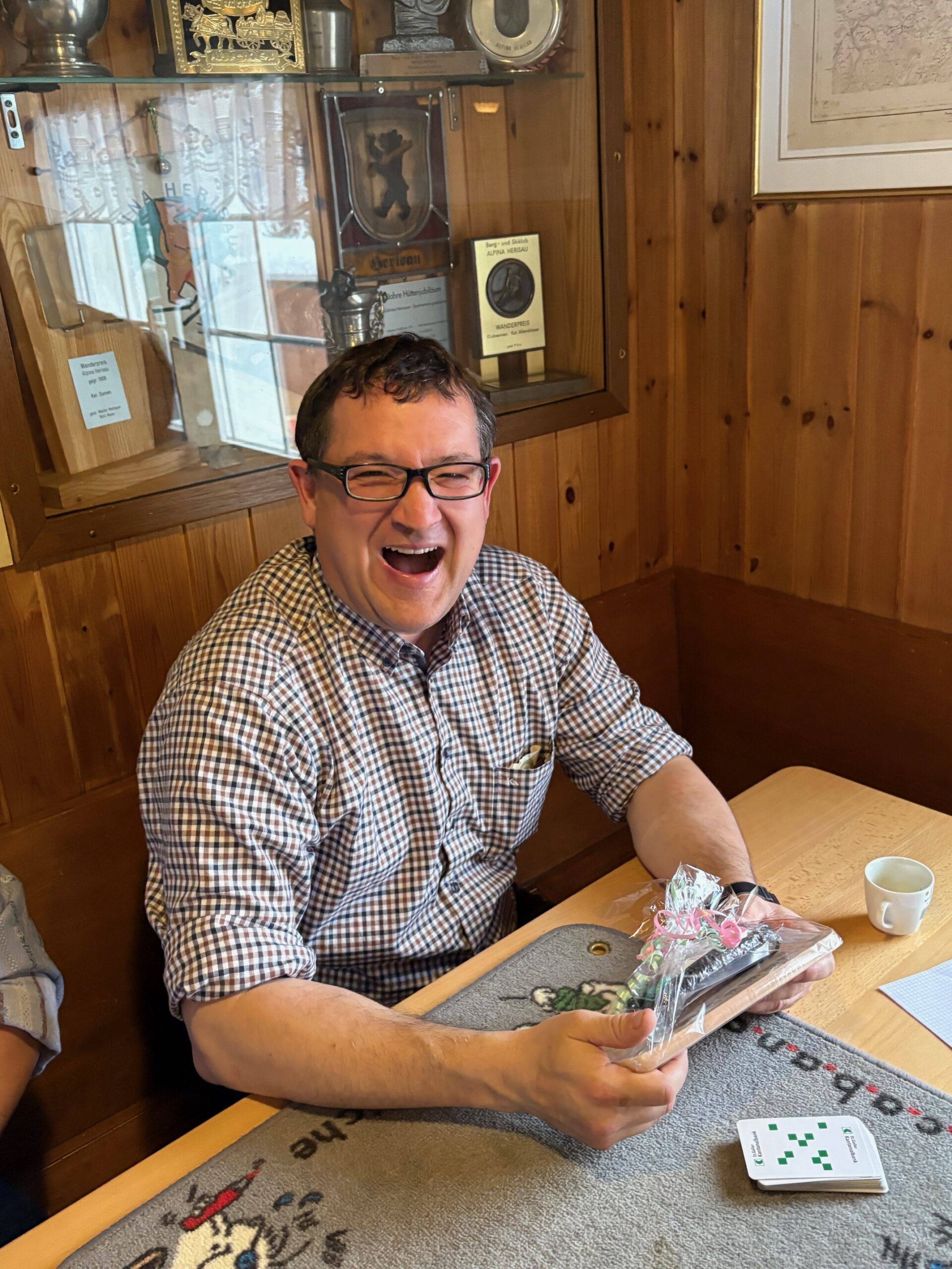 Unser Jassen war ein gemütlicher Anlass . Schöner Gabentisch